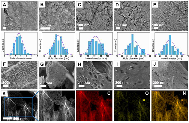 随后,研究人员将获得的氮掺杂纳孔石墨烯(图2)制备成膜用于稀土元素的分离,获得了良好的分离选择性,最高膜分离因子达到3.7。理论模拟表明,氮掺杂纳孔石墨烯中的吡咯氮原子,在稀土离子的选择性分离过程中起到了主要作用。该制备方法简单高效、膜分离稳定性优异。这一研究不仅为杂原子掺杂纳孔石墨烯材料的制备开辟了新途径,而且为实现稀土离子的高选择性膜分离提供了新思路,具有潜在的工业应用前景。相关成果近期发表在在Cell Press旗下综合类子刊《iScience》上(iScience,2021,24,101920),谭洪鑫博士生为该论文的第一作者,李湛研究员和邱洪灯研究员为共同通讯作者。