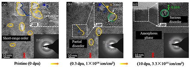 图3 MoS2/YSZ纳米复合薄膜微观结构调控对其辐照损伤影响