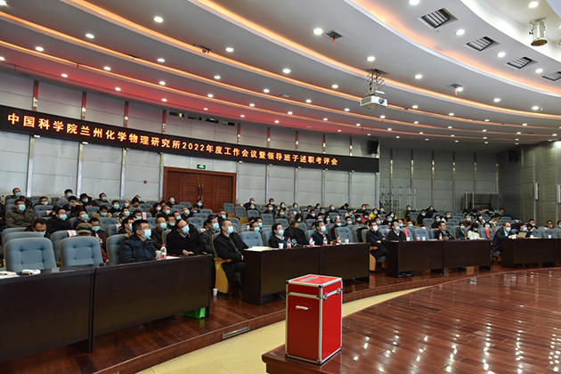 1月6日上午,中国科学院兰州化学物理研究所召开2022年度工作会议暨领导班子工作述职考评会。研究所领导班子成员、党委委员、纪委委员、学术委员会委员、职代会常设主席团成员、中层领导人员、副高级以上专业技术骨干人员、党支部书记、民主党派人员代表、离退休人员代表等参加会议。中科院兰州分院分党组书记、院长肖国青,兰州分院分党组成员、副院长陈改学,组织人事教育处负责人等考核组成员出席会议。兰州化物所党委副书记、纪委书记张长春主持会议。