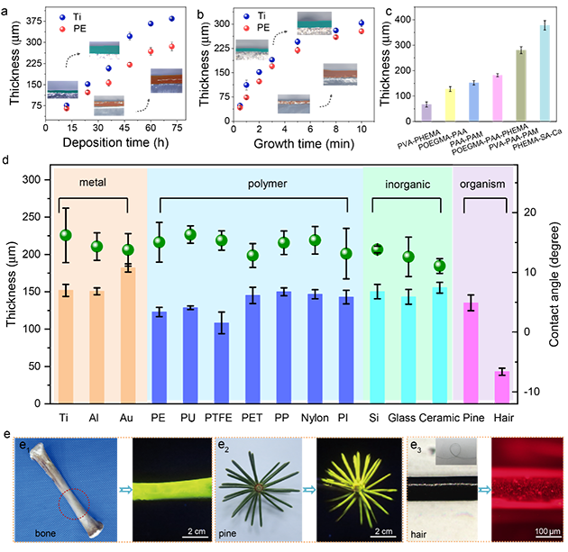 图2. 利用SIL@UV-SCIRP方法在各种基底表面可控生长水凝胶涂层