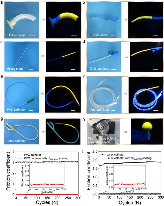 图4. 利用SIL@UV-SCIRP方法在各种医疗器械外表面生长水凝胶润滑涂层