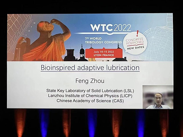 7月10至15日,第7届世界摩擦学大会(7th World Tribology Congress, WTC2022)在法国里昂召开,来自全世界摩擦学领域的顶级专家、知名学者、青年科学家、学生以及工业界人士通过线下或线上方式参加了会议。中国科学院兰州化学物理研究所润滑材料全国重点实验室主任周峰研究员受邀参加大会,并于7月12日以录制视频形式作了题为“Bioinspired adaptive lubrication”的主题报告,周峰研究员为唯一受邀作大会报告的国内学者。