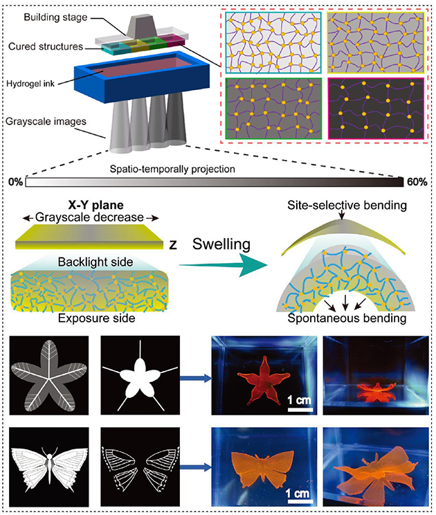 2. 灰度3D打印可控变形水凝胶仿生结构