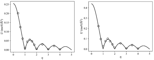 图4 分子动力学计算检验势能起伏函数。(左)旋转双层石墨烯;(右)石墨烯/六方氮化硼