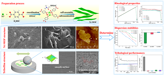基于原位摩擦催化设计理念,研究人员将超薄2D-MOF纳米片添加至500N中,Ni-MOF与基础油分子和Fe基体发生催化化学反应,形成由铁氧化物、碳基物质和氮基物质组成的具有混凝土结构的碳基摩擦膜,使摩擦系数和磨损分别降低33.2%和98.7%。相关成果发表在Materials & Design(2022,223:111251,DOI: 10.1016/j.matdes.2022.111251)与《中国科学:技术科学》(2022, 53(3):1674-7259, DOI: 10.1360/SST-2022-0162)上。