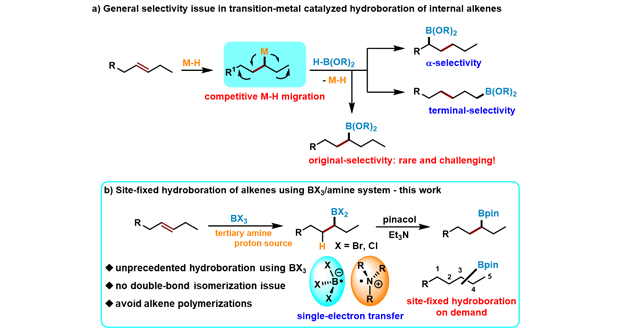 有机硼酸酯类化合物由于其相对稳定性、官能团兼容性和多样的反应活性,是一类非常重要的合成中间体,在药物化学和材料科学中发挥着关键作用。烯烃硼氢化是高效、高原子经济性制备硼酸酯类化合物的常用方法。然而...