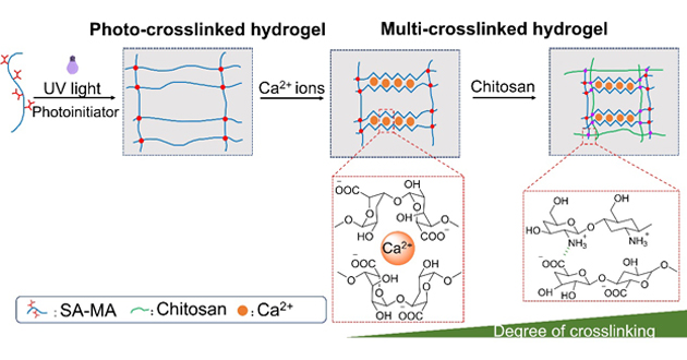 刺激响应性水凝胶不仅具有优异的生物相容性,还可以感知外界刺激并做出响应,在生物医学领域具有较好的应用前景。但是,目前刺激响应性水凝胶依然存在机械性能差、响应性单一等缺点。而且,随着海藻酸钠结构在两...