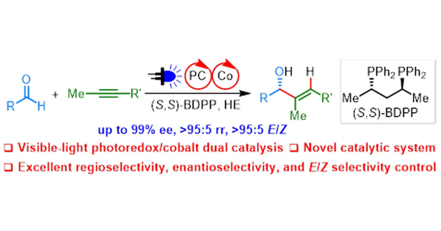 过渡金属催化的还原偶联反应是以亲电试剂为原料构建新的碳-碳键的简单直接的方法。近年来,不饱和π键之间的不对称还原偶联反应得到了较大的发展,其中,炔烃作为一种简单易得的原料受到了广泛关注。在金属铑或...