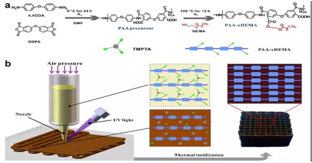 中国科学院兰州化学物理研究所固体润滑国家重点实验室王晓龙研究员团队和江南大学机械学院刘禹教授团队合作,在原DLP 3D打印聚酰亚胺基础上(Solvent-free and photocurable polyimide inks for 3D printing, J....