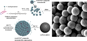 图1介孔碳纳米球的形成过程和SEM照片 |