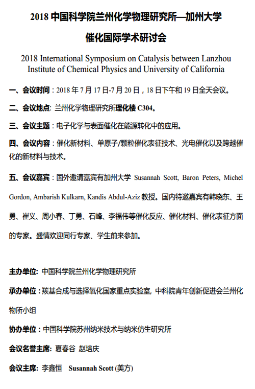 中国科学院兰州化学物理研究所—加州大学催化国际学术研讨会会议通知