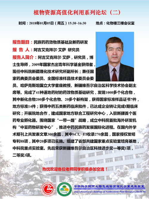 来源:院西北特色植物资源化学重点实验室 | 发布时间:2018-01-03 | 【 大 中 小 】