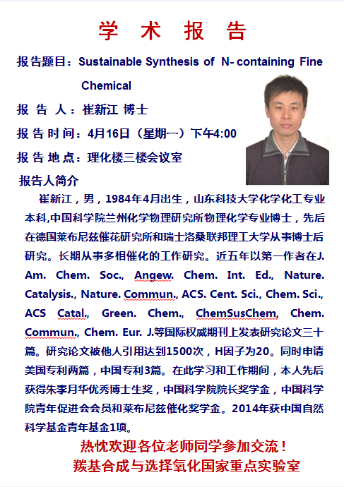 4月16日:Sustainable Synthesis of N- containing Fine Chemical