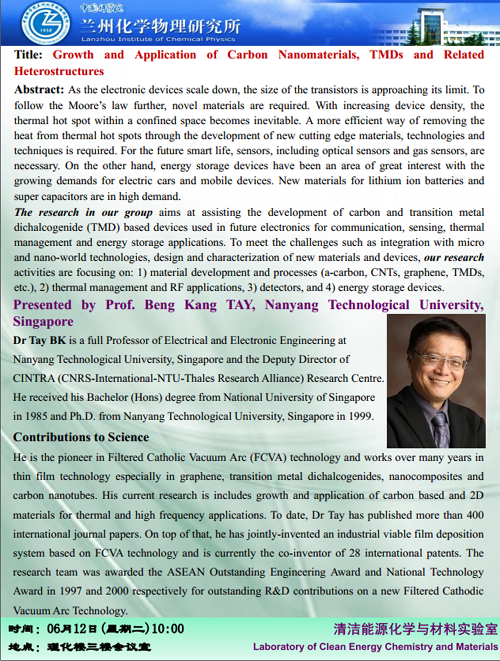 6月12日:Growth and Application of Carbon Nanomaterials, TMDs and Related