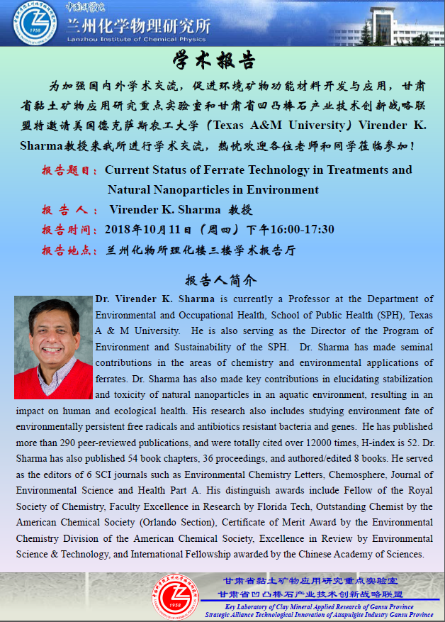 10月11日:Current Status of Ferrate Technology in Treatments and Natural Nanoparticles in Environment