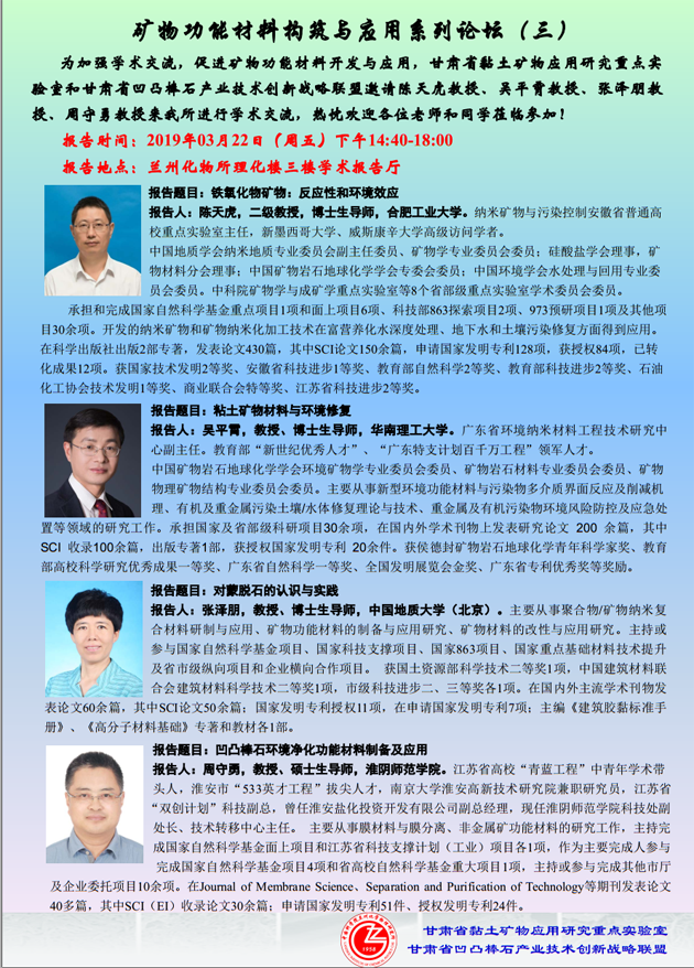 3月22日:矿物功能材料构筑与应用系列论坛(三)