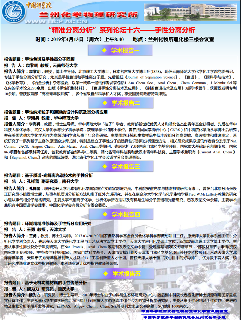 4月13日:“精准分离分析”系列论坛(十六)——手性分离分析