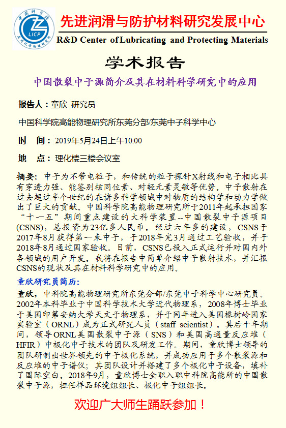 5月24日:学术报告---中国散裂中子源简介及其在材料科学研究中的应用