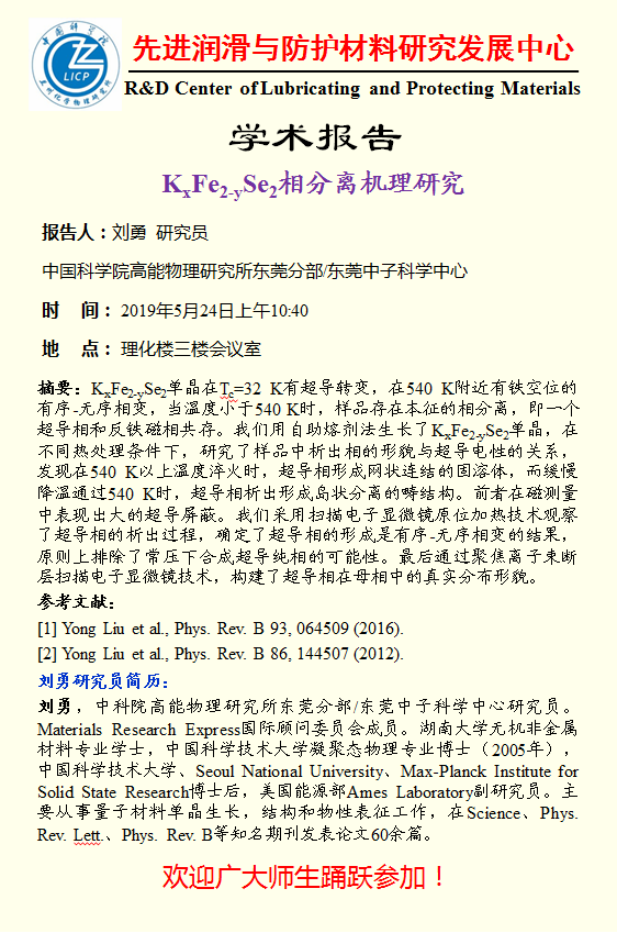 5月24日:学术报告---KxFe2-ySe2相分离机理研究