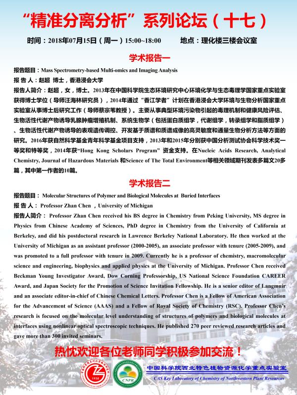 7月15日:学术报告—“精准分离分析”系列论坛(十七)