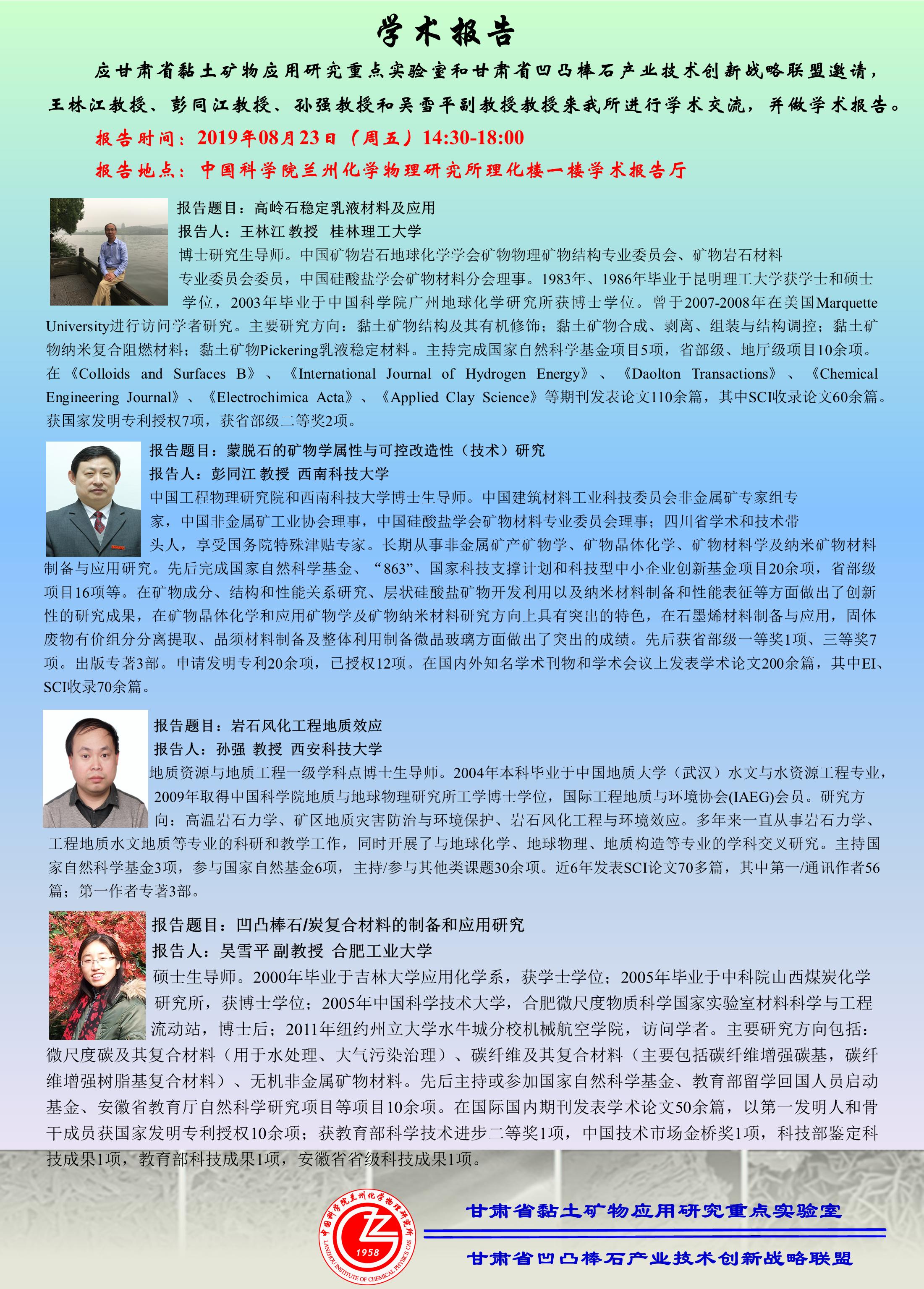 8月23日:学术报告——矿物功能材料构筑与应用系列论坛(四)