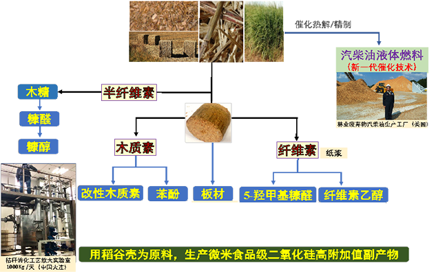 木质纤维素类生物质全组份转化利用工艺路线和产品