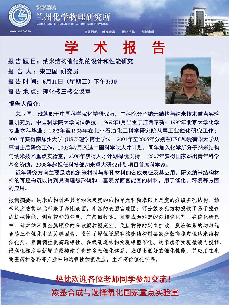 6月11日-学术报告-纳米结构催化剂的设计和性能研究