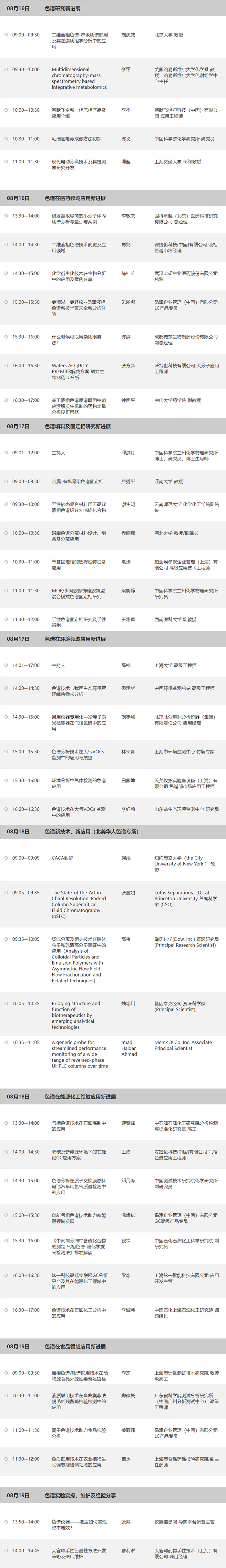 第七届网络色谱会议(iCC 2022)分设色谱前沿研究进展、色谱新技术、新方法(北美华人色谱专场)、色谱填料及固定相研究最近技术进展、色谱在食品领域的应用、色谱在制药领域的应用、色谱在环境领域的应用、色谱在石化领域的应用、色谱维护与保养专场共8个专场,将聚焦色谱技术最新成果,以及在制药、食品、环境、石化等最新研究进展。