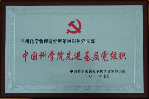 6月24日下午,在中国科学院庆祝中国共产党成立90周年暨创先争优活动表彰大会上,兰州化物所党委书记兼副所长工会主席赵秀茹被授予 “优秀党务工作者”荣誉称号,退休职工第四党支部被授予中科院“先进基层党组织”荣誉称号。