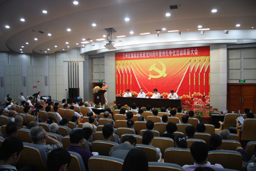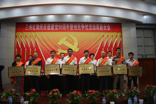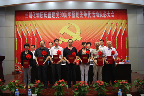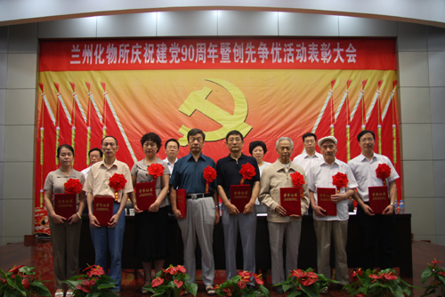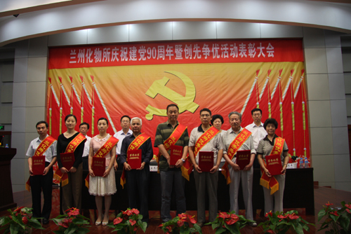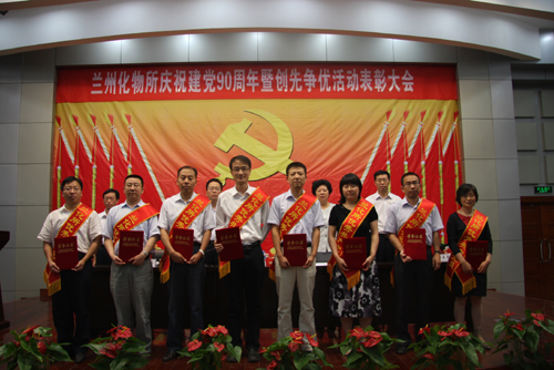 6月30日上午,兰州化物所理化楼一楼学术厅灯火辉煌,花团锦簇,主席台帷幕中央的党徽显得格外醒目,十面红旗分列两侧,热烈的气氛洋溢在整个会场。兰州化物所庆祝建党九十周年暨创先争优活动表彰大会在这里隆重举行。所党委书记兼副所长赵秀茹,副所长、党委委员王齐华,党委委员邵士俊研究员,所长助理师彦平与全所300余名共产党员、民主党派代表、入党积极分子代表欢聚一堂,共同庆祝中国共产党成立90周年。大会由王齐华副所长主持。