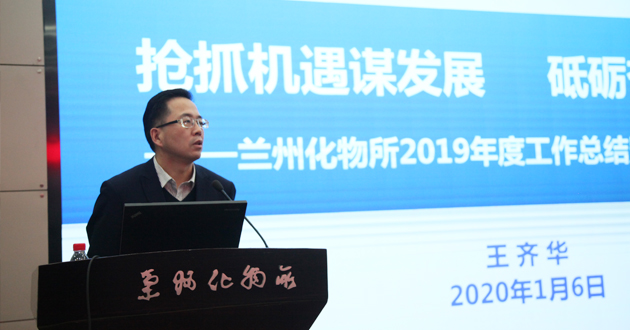 兰州化物所所长、党委书记王齐华代表研究所领导班子作了题为《抢抓机遇谋发展 砥砺奋进启新程》的报告,介绍了2019年研究所主要工作进展、形势与挑战、2020年重点工作等。随后,王齐华作了2019年度党建工作报告,从政治建设、思想建设、开展“不忘初心、牢记使命”主题教育情况、组织建设、作风与学风建设、深入推进纪律建设和反腐败斗争、坚决打赢脱贫攻坚战等8个方面介绍了2019年主要工作,总结了存在的不足,提出了2020年重点工作思路。