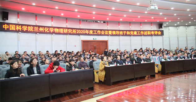 1月6日下午,中国科学院兰州化学物理研究所召开2020年度工作会议暨领导班子和党建工作述职考评会。中科院兰州分院分党组书记、副院长张怀刚,兰州分院分党组成员、副院长吴建刚,兰州分院分党组成员、纪检组组长宋文辉,近代物理所党委书记、副所长赵红卫,西北生态环境资源研究院党委书记、副院长冯起,兰州分院组织人事教育处、党建与监察审计处负责人与相关工作人员组成考核组,对兰州化物所领导班子和领导人员及党建工作情况进行现场考评。兰州化物所领导班子成员、党委委员、纪委委员、学术委员会委员、所长助理和管理与支撑部门负责人、副高及以上专业技术骨干人员、党支部书记、民主党派人员代表、离退休人员代表等以及各类职工代表约250余人参加了会议。