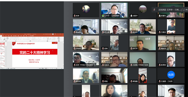 11月2日下午,中国科学院兰州化学物理研究所召开党务干部学习党的二十大精神暨党建工作推进会。党委书记王齐华主持会议。党委副书记、所长周峰,各党支部书记、委员、党小组长和专职党务纪监审干部等100多人参加会议。