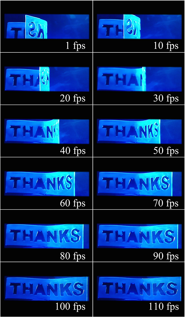 《“不忘初形”的荧光聚合物》材料在紫外光照射下逐渐恢复形状的过程