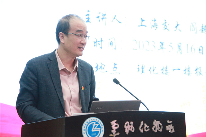 活动邀请上海交通大学长聘教授、博士生导师阎超作了题为《毛泽东诗词赏析》的专题报告。阎超教授表示,毛泽东是伟大的革命家、政治家、军事家、思想家,同时又是独领风骚的诗词巨匠,毛泽东诗词想象丰富、气势磅礴、寓意深刻、意境高远,是中国革命和建设艰辛历程的艺术再现,弘扬了中华优秀传统文化和社会主义先进文化。报告从毛泽东同志不同时期代表性诗词入手,介绍了诗词的艺术特点、创作背景和影响,再现了中国革命各个发展阶段的历史画面,是一堂生动的党史教育课。