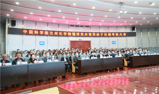 6月2日上午,中国科学院兰州化学物理研究所领导班子任期考核大会在理化楼一楼会议室召开。中国科学院人事局副局长蔡宏志,甘肃省委组织部干部三处副处长伏雄飞,兰州分院分党组书记、院长冯起,纪检组组长吴建刚和中国科学院人事局、兰州分院有关部门同志组成的考核组参加了任期考核大会。研究所领导班子成员、新近离任的领导班子成员、党委委员、纪委委员、中层领导人员、专业技术骨干人员以及各类职工代表等参加了考核大会。