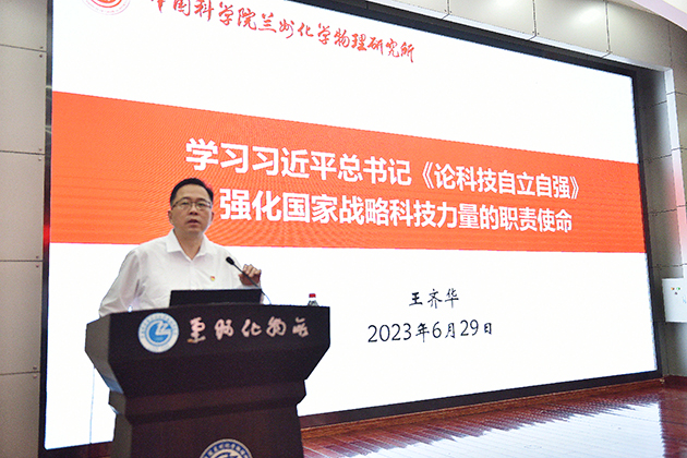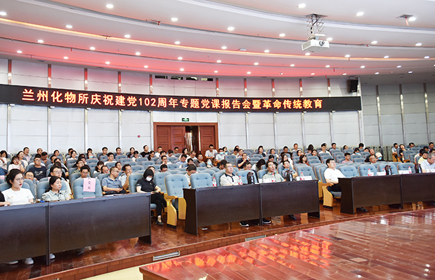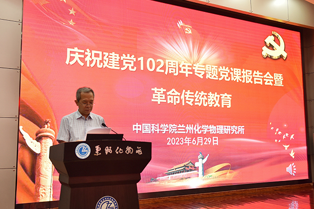 6月29日下午,中国科学院兰州化学物理研究所举行庆祝建党102周年专题党课报告会暨革命传统教育活动。全所党员干部职工和研究生党员、离退休党员代表和民主党派代表参加会议。党委委员、副所长张俊彦主持会议。