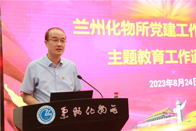 8月24日上午,中国科学院兰州化学物理研究所召开党建工作推进会暨主题教育工作通报会。领导班子成员,各党支部(党总支)书记、委员、党小组长参加会议。党委副书记、所长周峰主持会议。