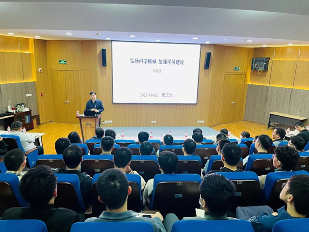 10月12日上午,中国科学院院士、中国科学院兰州化学物理研究所学术委员会副主任委员刘维民研究员应邀为西北工业大学材料学院师生作“弘扬科学精神 加强学风建设”专题报告。报告会由西北工业大学材料学院党委书记李恒教授主持,200余名师生参加了报告会。