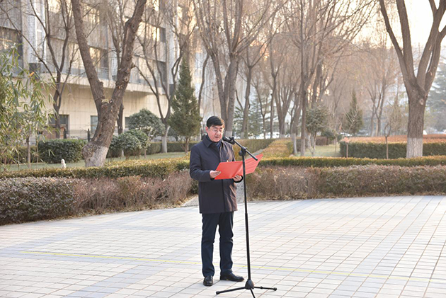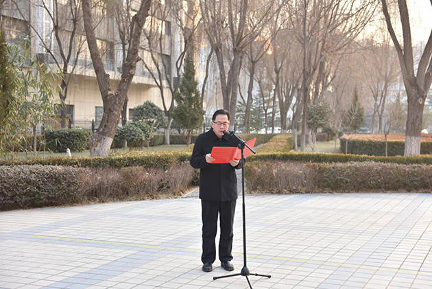 升旗仪式上,兰州分院分党组成员、副院长赵培庆代表分院党组向系统全体职工、研究生和离退休人员祝新年贺词。