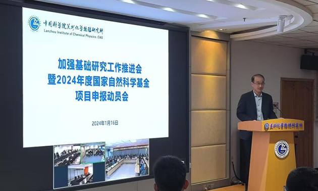 1月16日下午,中国科学院兰州化学物理研究所召开加强基础研究工作推进会暨2024年度国家自然科学基金项目申报动员会,深入学习贯彻习近平总书记关于基础研究的系列重要指示批示精神、中国科学院党组相关要求,推进2024年度国家自然科学基金项目组织申报工作。所长、党委副书记周峰出席会议,研究所青年科研骨干和科研与规划处相关人员参加会议。