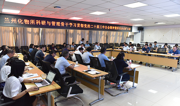 为深入学习宣传贯彻党的二十届三中全会精神,贯彻落实中国科学院党组有关学习要求,8月5日下午,中国科学院兰州化学物理研究所召开科研与管理骨干学习贯彻党的二十届三中全会精神研讨会。所领导班子成员、实验室(中心)正副主任、管理与支撑部门正副处长参加会议。所长、党委副书记周峰主持会议。