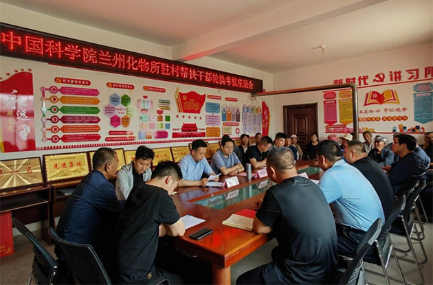 为进一步加强驻村帮扶工作力量、推动富民产业发展,5月21日,中国科学院兰州化学物理研究所纪委书记张景光带领党委办公室(所办公室)、人事人才处等相关人员前往会宁县汉家岔镇王马山村,开展2025年驻村干部轮换考核和产业帮扶活动。汉家岔镇党委副书记赵振作与镇村党员干部、群众代表等参加活动。