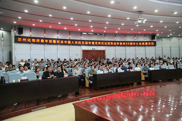 9月3日上午,纪念中国人民抗日战争暨世界反法西斯战争胜利80周年大会在北京天安门广场隆重举行。为共同见证这一盛况,中国科学院兰州化学物理研究所组织广大职工、研究生、离退休老同志集中收看大会直播。