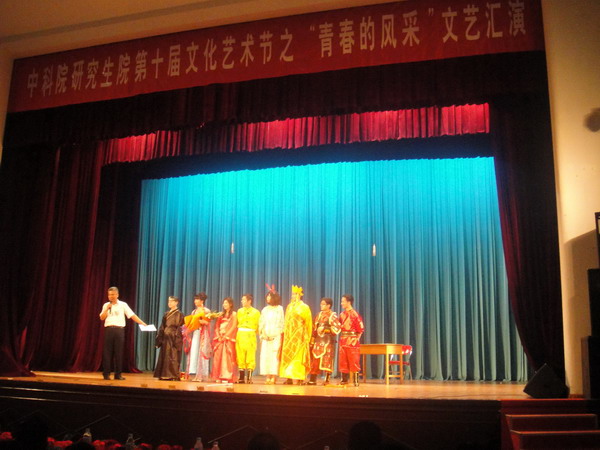 作为文化艺术节的重头戏之一,“青春的风采”文艺汇演于6月10晚在研究生院礼堂隆重举行。兰化所9名研究生带着精心选排的节目远赴北京,盛装亮相。