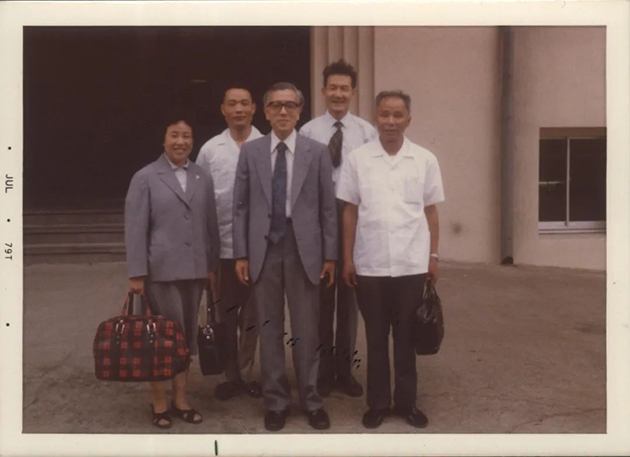 1979年7月党鸿辛(右一)等人与东京大学生产技术研究所名誉教授松永正久合影