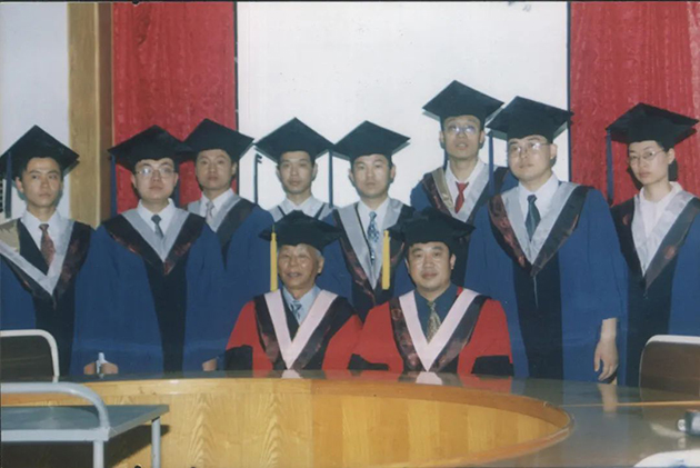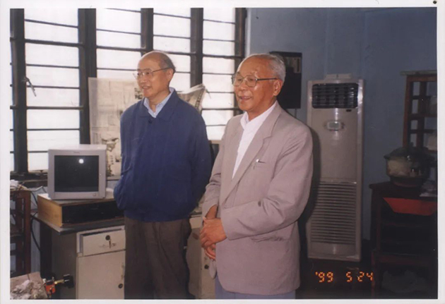 1999年,党鸿辛(右一)在实验室