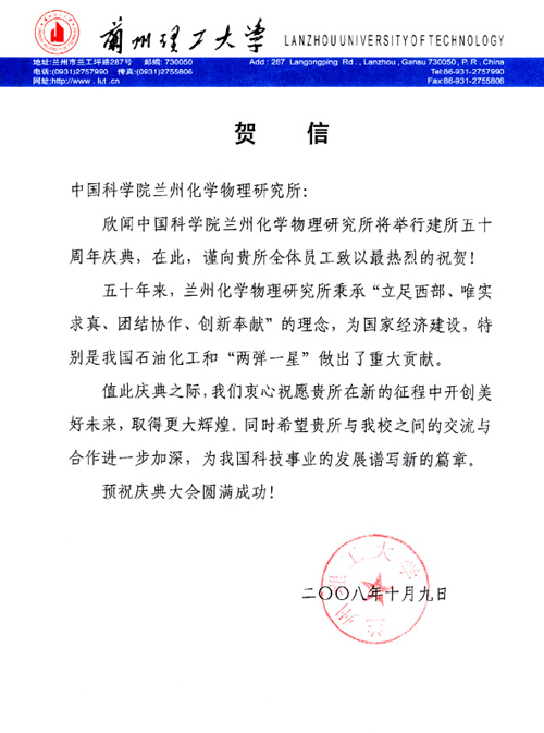 兰州理工大学贺信