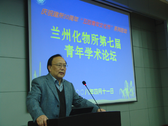 薛院士首先向大家介绍了兰化所的发展历程,五十年来学科调整和发展情况以及各时期学术带头人及其主要贡献。他强调,青年是科研事业和研究所的希望,青年人的进步是研究所的希望所在。青年学术论坛为青年职工和研究生提供了锻炼提高的平台,只有多参加研讨和不同学科间的交流,才能拓宽视野,更好地把握好自己的研究方向。他希望广大青年要诚信做人,善于学习,自信自强,大胆创新。