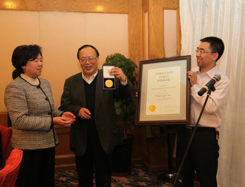 会上,薛院士向国家科技部、国家基金委、中科院、中国工程院、兰州分院和全所职工、研究生对兰化所润滑学科的发展和个人工作给予的支持表示由衷的感谢。他说国际摩擦学金奖这一荣誉,不仅仅属于我个人,更属于兰化所、中国摩擦学界和中国人。他简要回顾了自上世纪六十年代进入兰化所后润滑学科的发展历程,回忆了在艰苦条件下老一辈科学家刻苦钻研、忘我工作、无私奉献的奋斗精神。他希望青年人对国家科技事业要有强烈的责任心,要始终保持对创新工作的激情,要学会做人、做事、做学问,不断学习进步。他表示,他将继续与全所职工和研究生一起为兰化所的发展和国家科技事业的进步作出自己应有的努力和贡献。